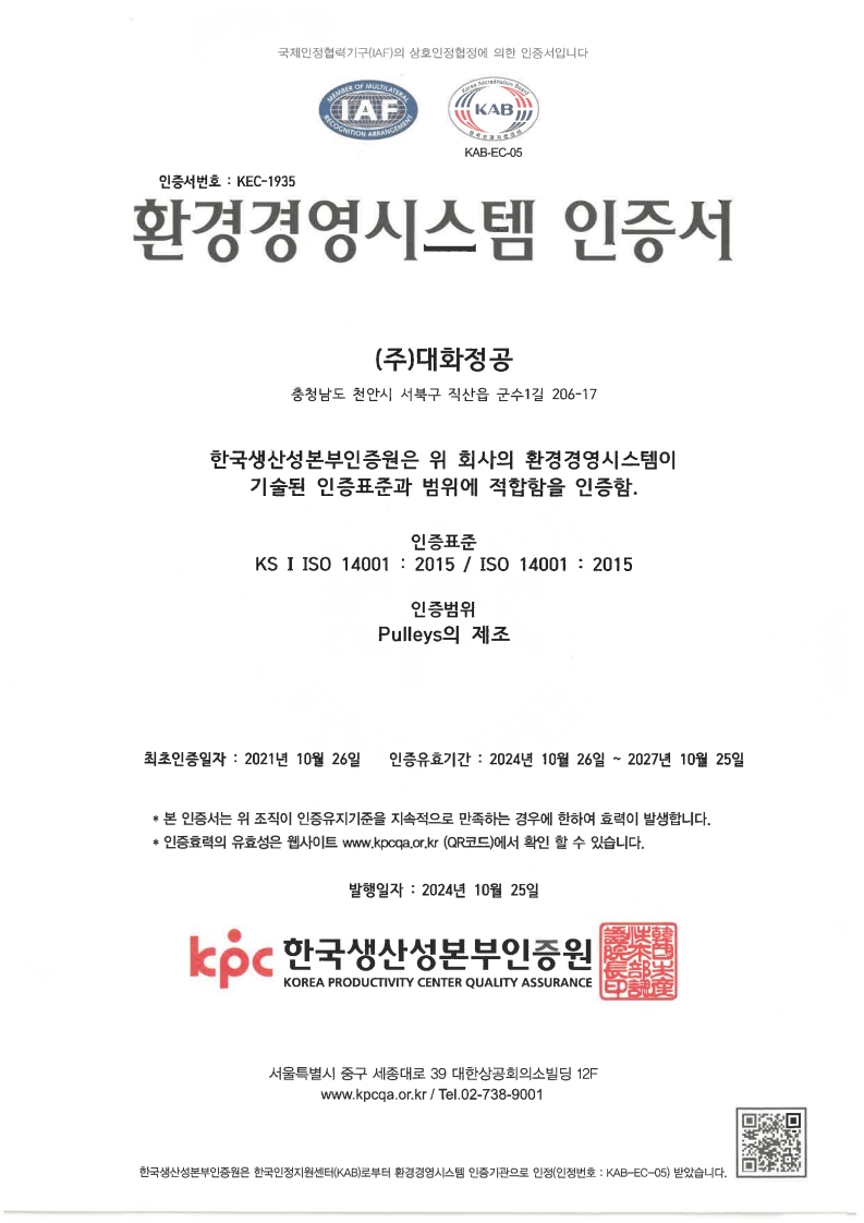환경경영시스템 인증서