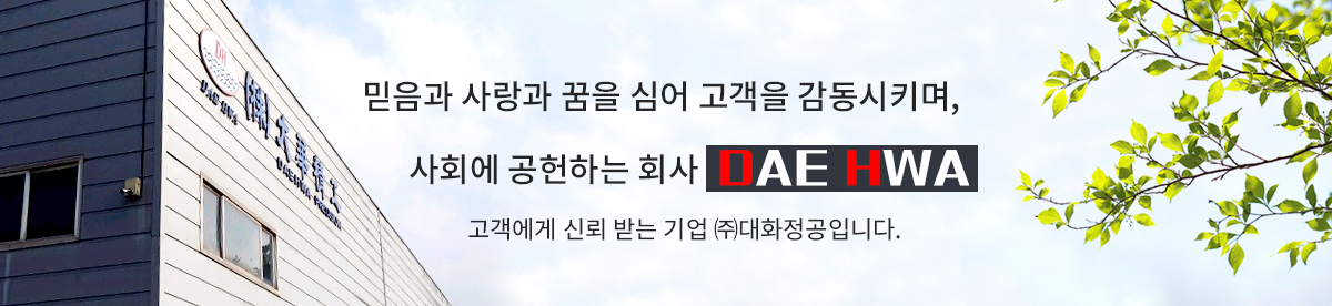 우리 회사 ㈜대화 정공은 1998년 창사이래 꾸준히 자동차 부품산업에 20여 년간 매진하여 고객이 만족하는 품질의 제품을 만들고자 꾸준히 노력하여 왔으며 앞으로도
